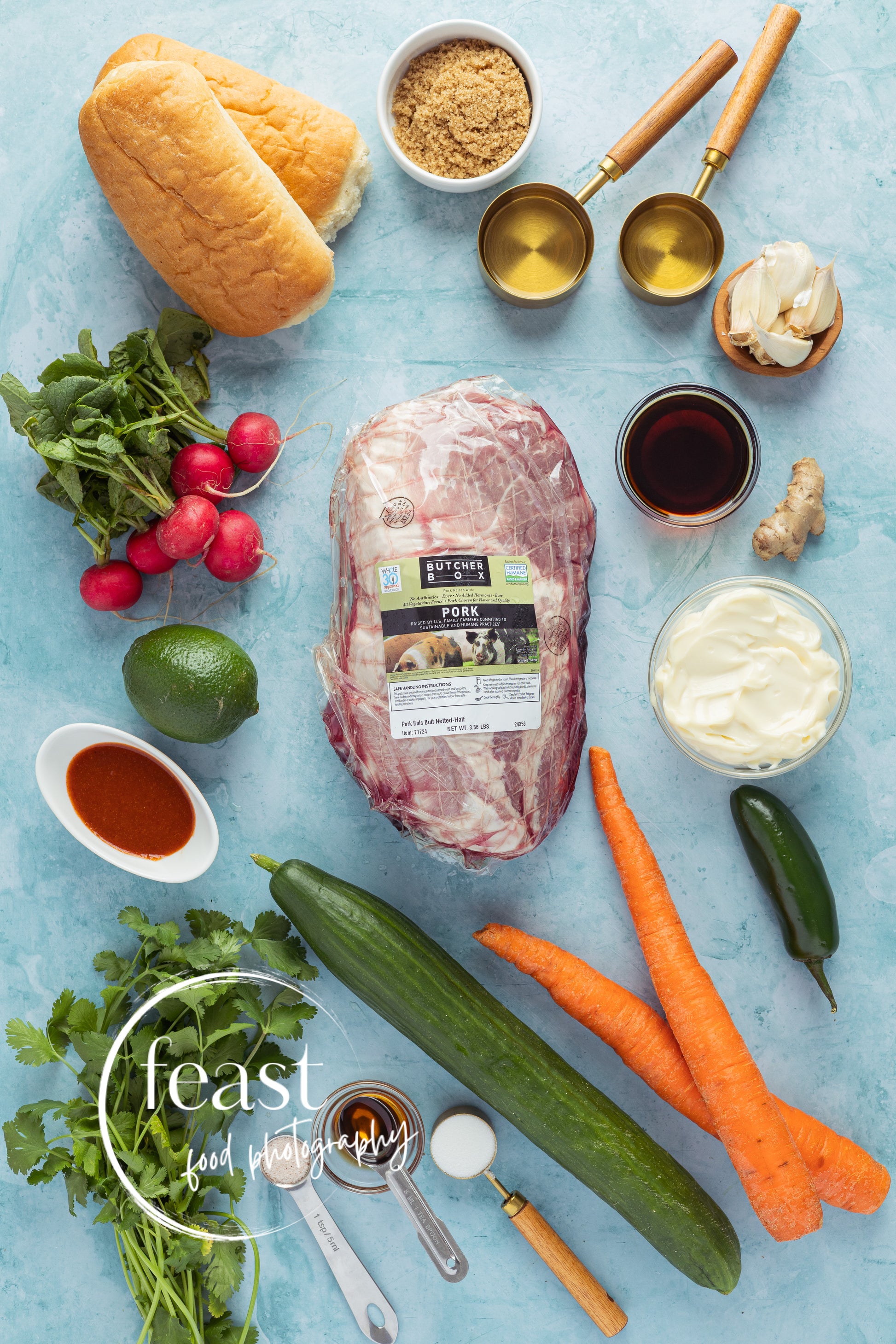 My family loved this simple spin on Bánh Mì sandwiches. This listing includes ingredient photos both with and without ButcherBox labeling. Perfect if you have a partnership with them.
